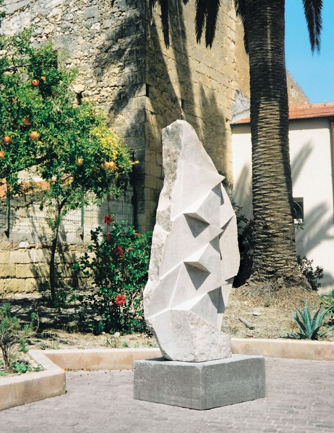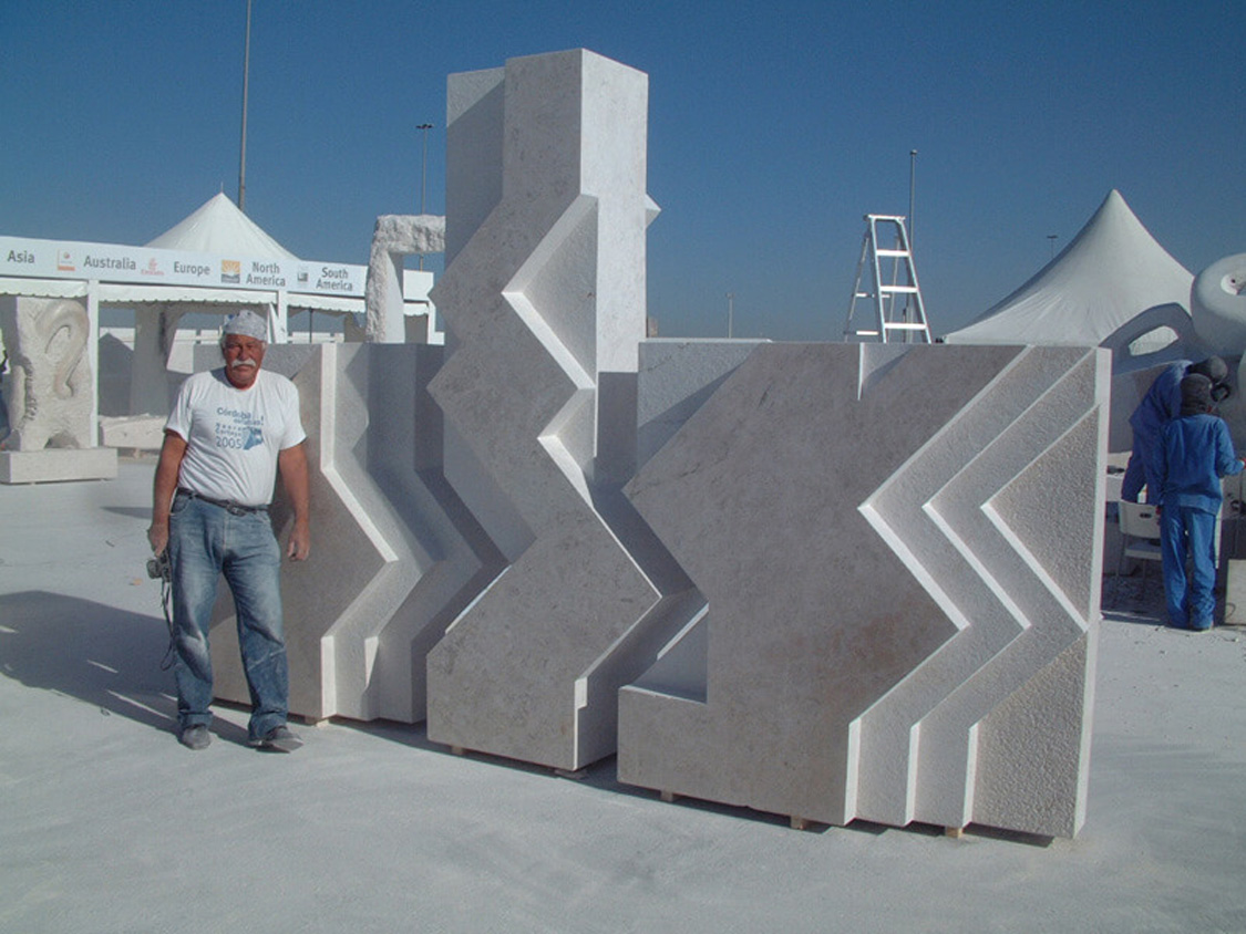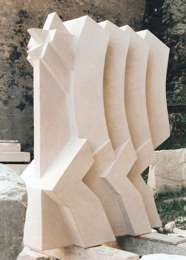 1998. PROGRESSIONI, limestone cm.120x60x60. Monarch Art Center Tenino