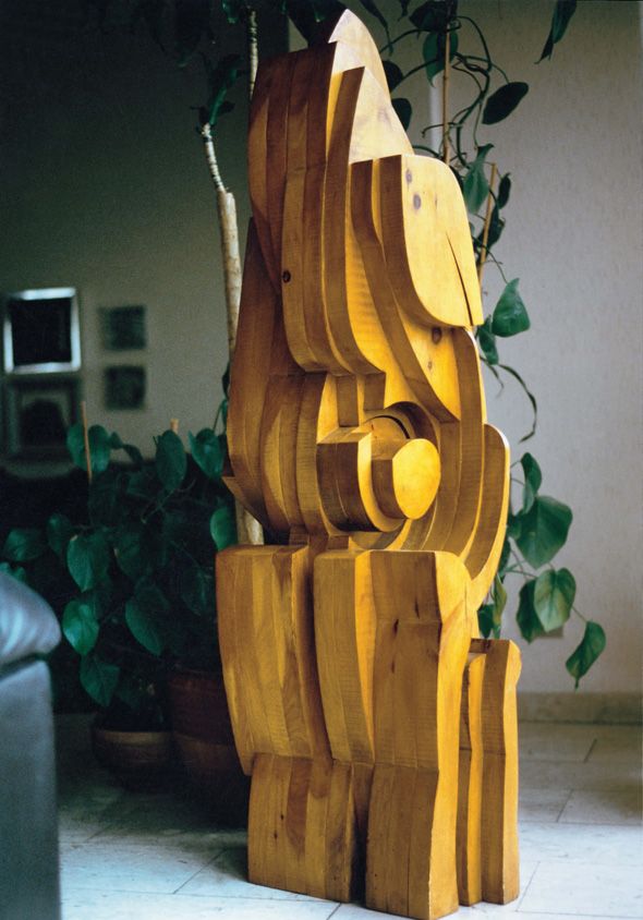 SCULTURA BENDAUD, 1974. legno dipinto cm. 200x60x40
